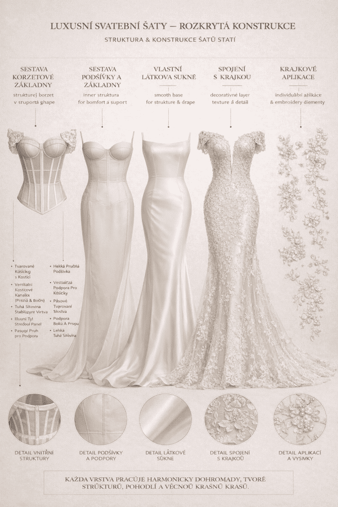 Pokud hledáte svatební šaty na míru, je důležité pochopit, za co skutečně platíte – látku, konstrukci, ruční práci a zkušenosti.