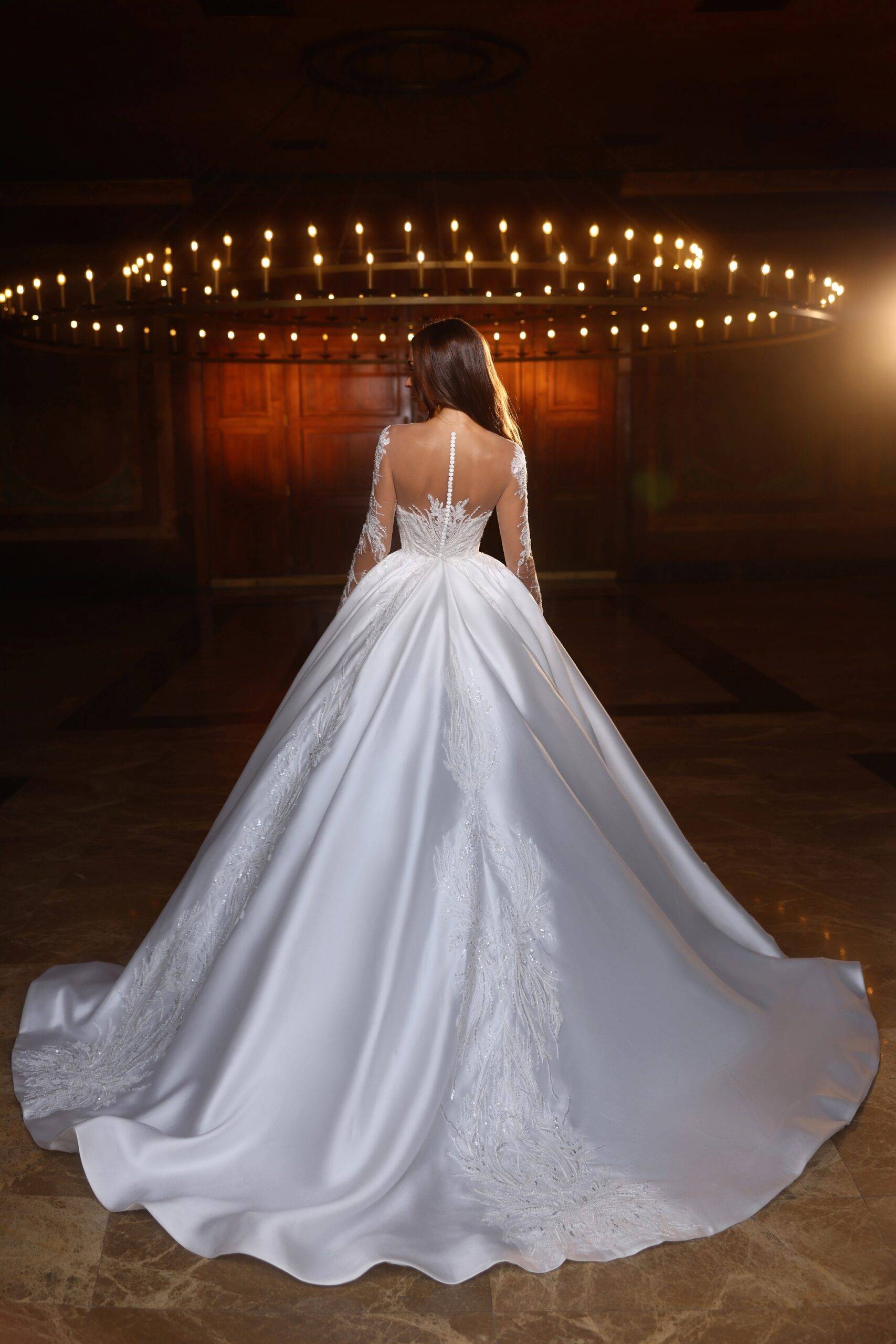 Svatební šaty CROWN ztělesňují nadčasovou krásu. Se svou dechberoucí siluetou, detailním zdobením a sofistikovaným designem slibuje, že promění každý okamžik v drahocennou vzpomínku.